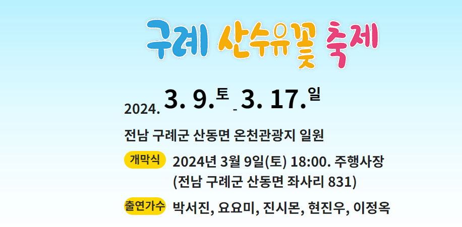 - 주최/주관: 구례산수유꽃축제추진위원회