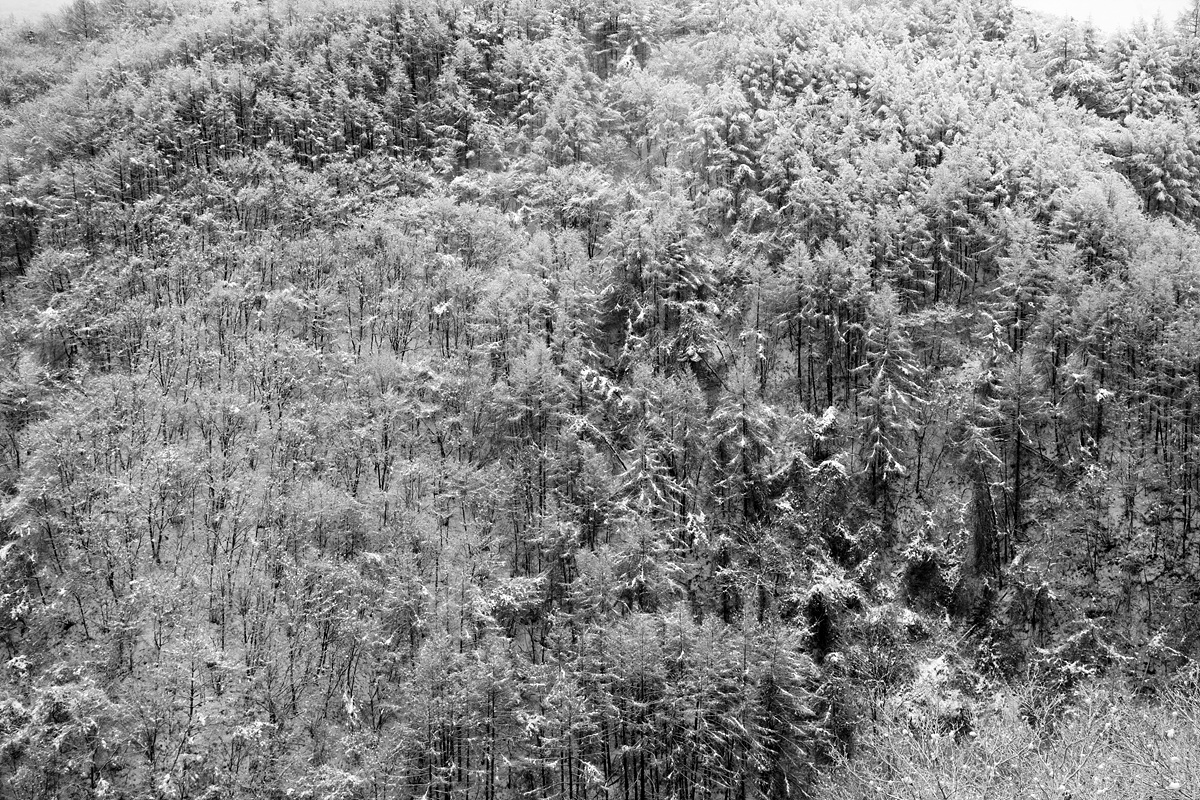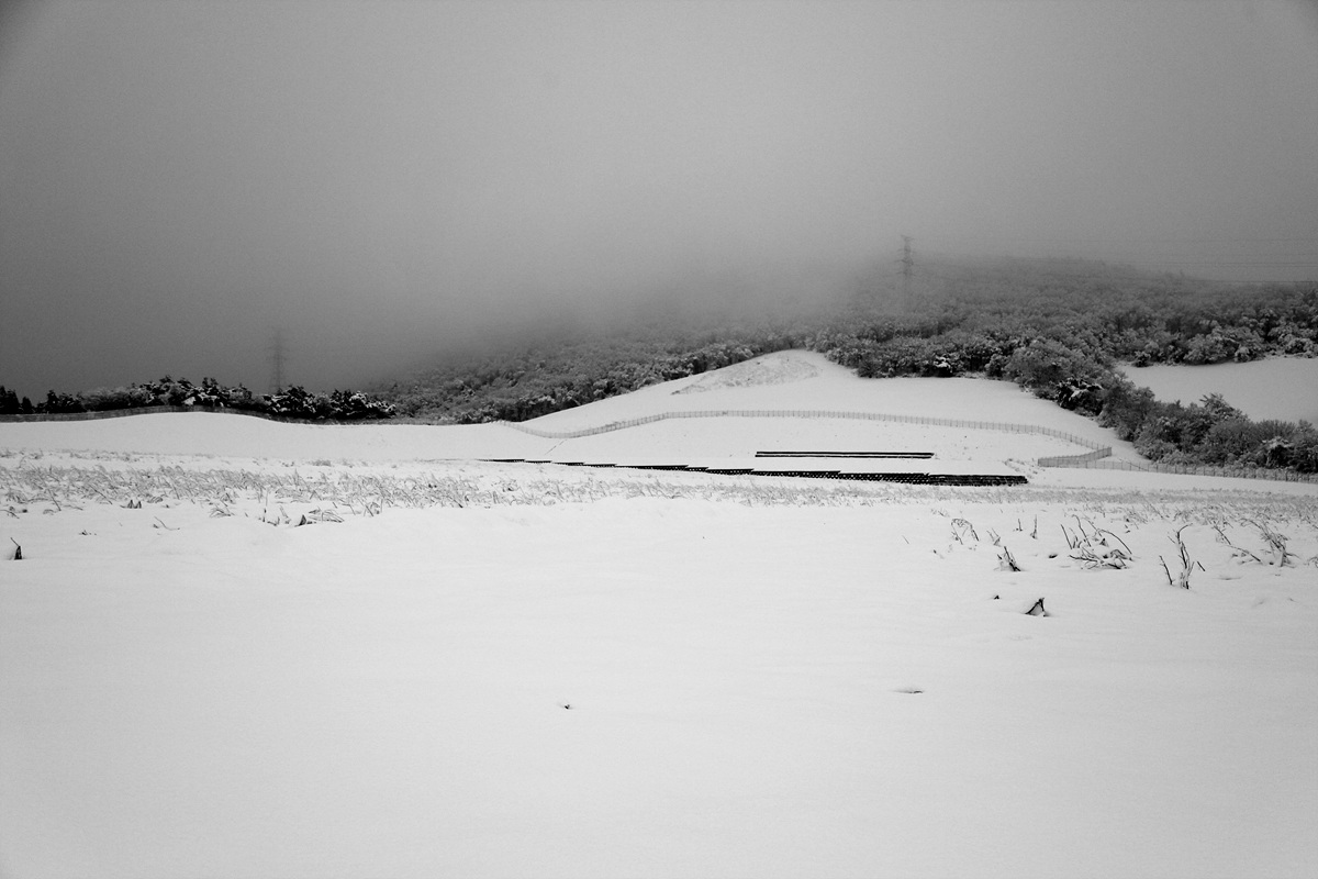 눈이 서서히 잦아들 무렵 안개도 서서히 걷힌다.