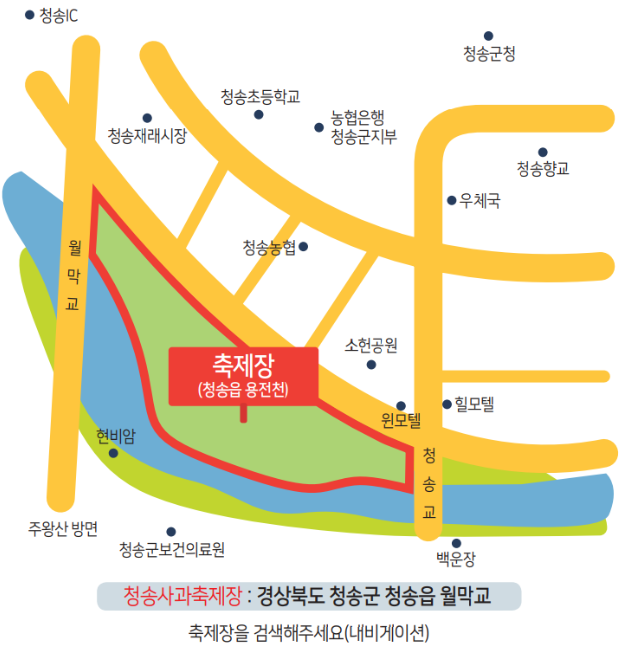 장소: 청송읍 용전천 일원 (현비암 앞) (경상북도 청송군 청송읍 월막리 362)