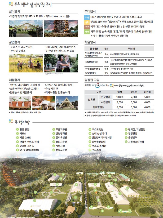 온라인은 yes24,(http://ticket.yes24.com/New/Perf/Detail/Detail.aspx?IdPerf=40444) - 2023 강원세계산림엑스포