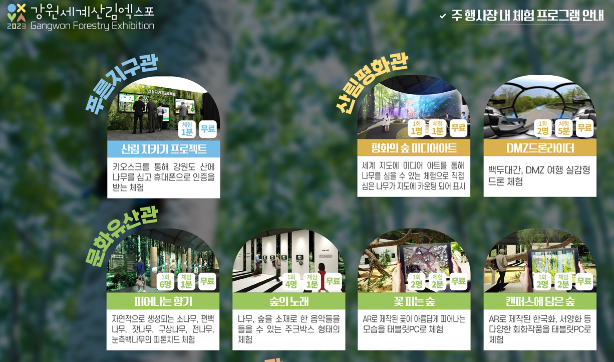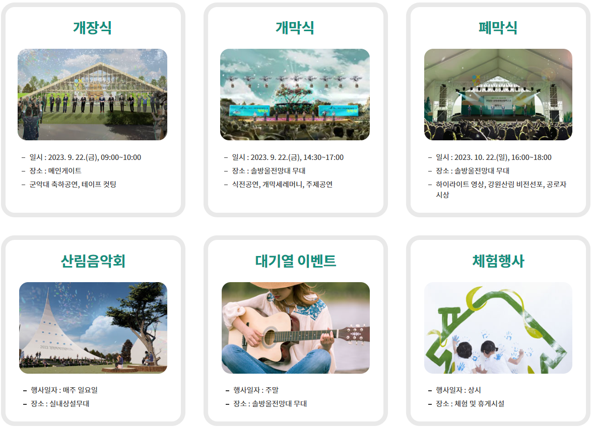 - 행사명: 2023 강원세계산림엑스포(Gangwon Forestry Exhibition 2023)