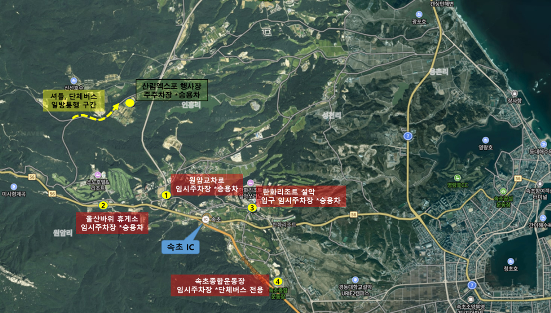 | 1 | 임시주차장① | 주행사장 ↔ 울산바위휴게소, 원암교차로 | 10:00 | 18:30 | 30분 | 20분 |
