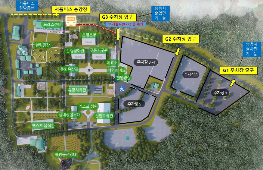 - 주차장 및 셔틀버스 안내